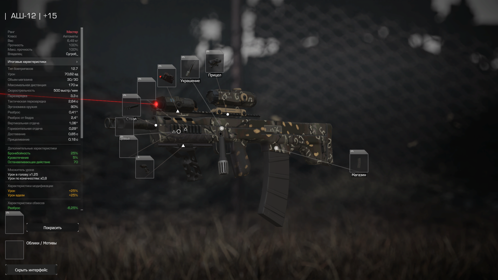 А аш12 нужен его большой глушитель с статами примерные как у гибрид(см фнфал)/мц558/грозы+-