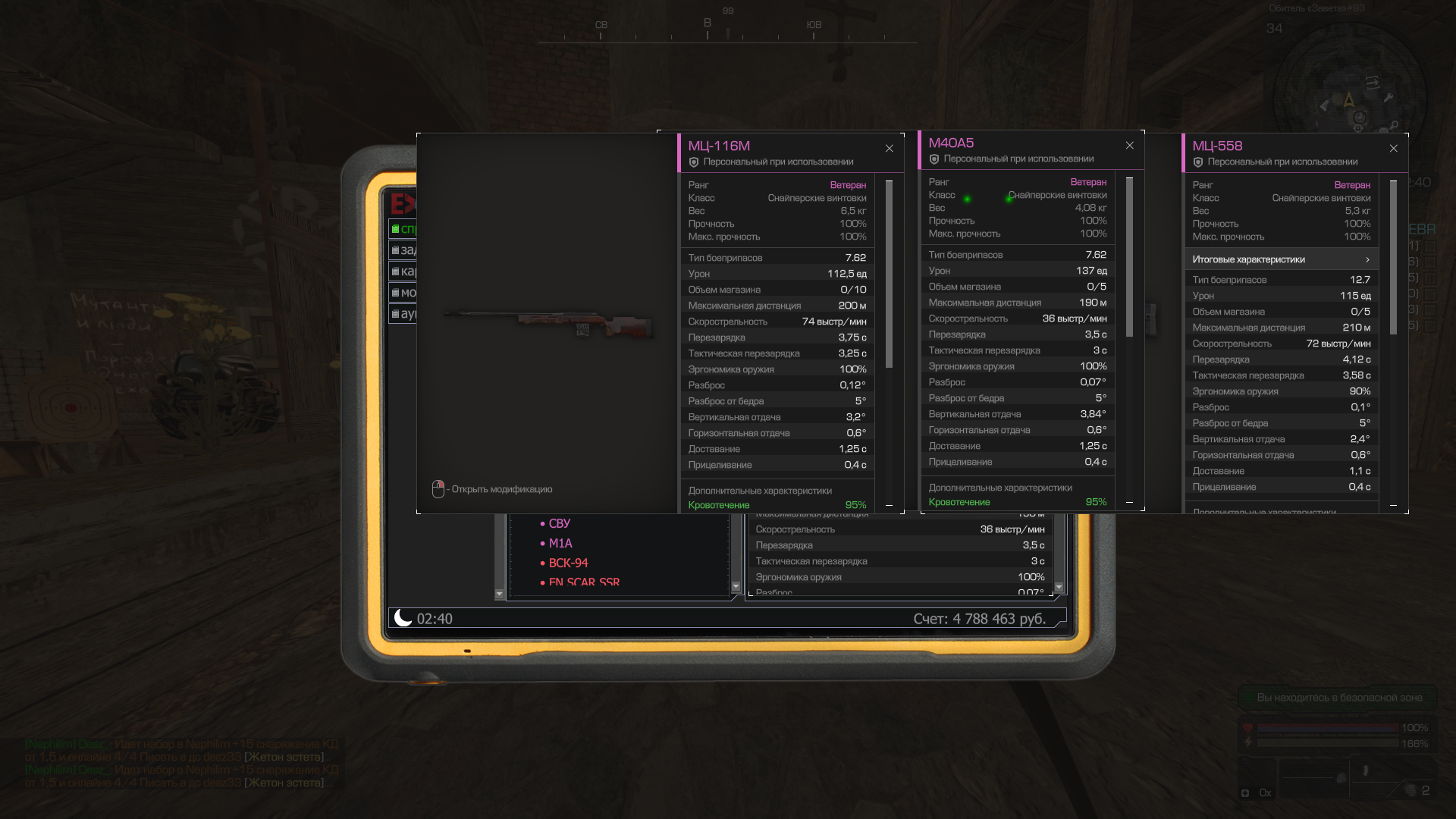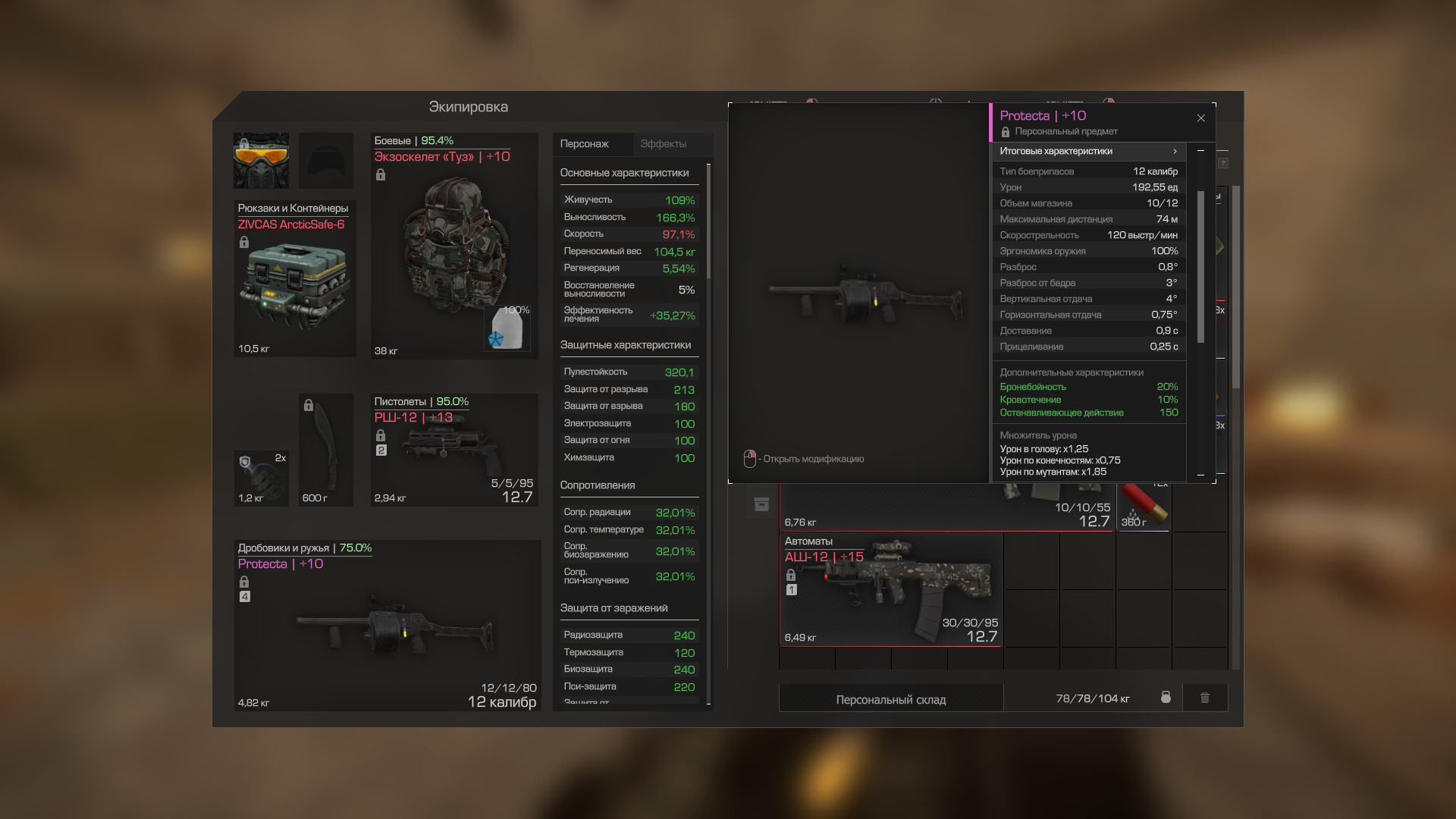 Выхлоп+15 - снп(ой. он только их и ест), м40+10 - ббшка (экспансивка оказалось абсолютно бесполезной, разница в жалкие 30 остановы), и протекта+10 на боевой пуле (разница от охотничей, в 5% кровотека(а мутанты не имеют крови) и 10% бронебоя)