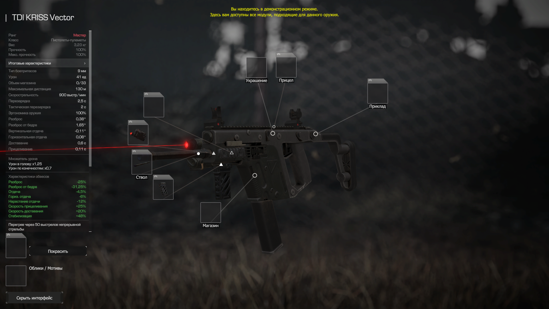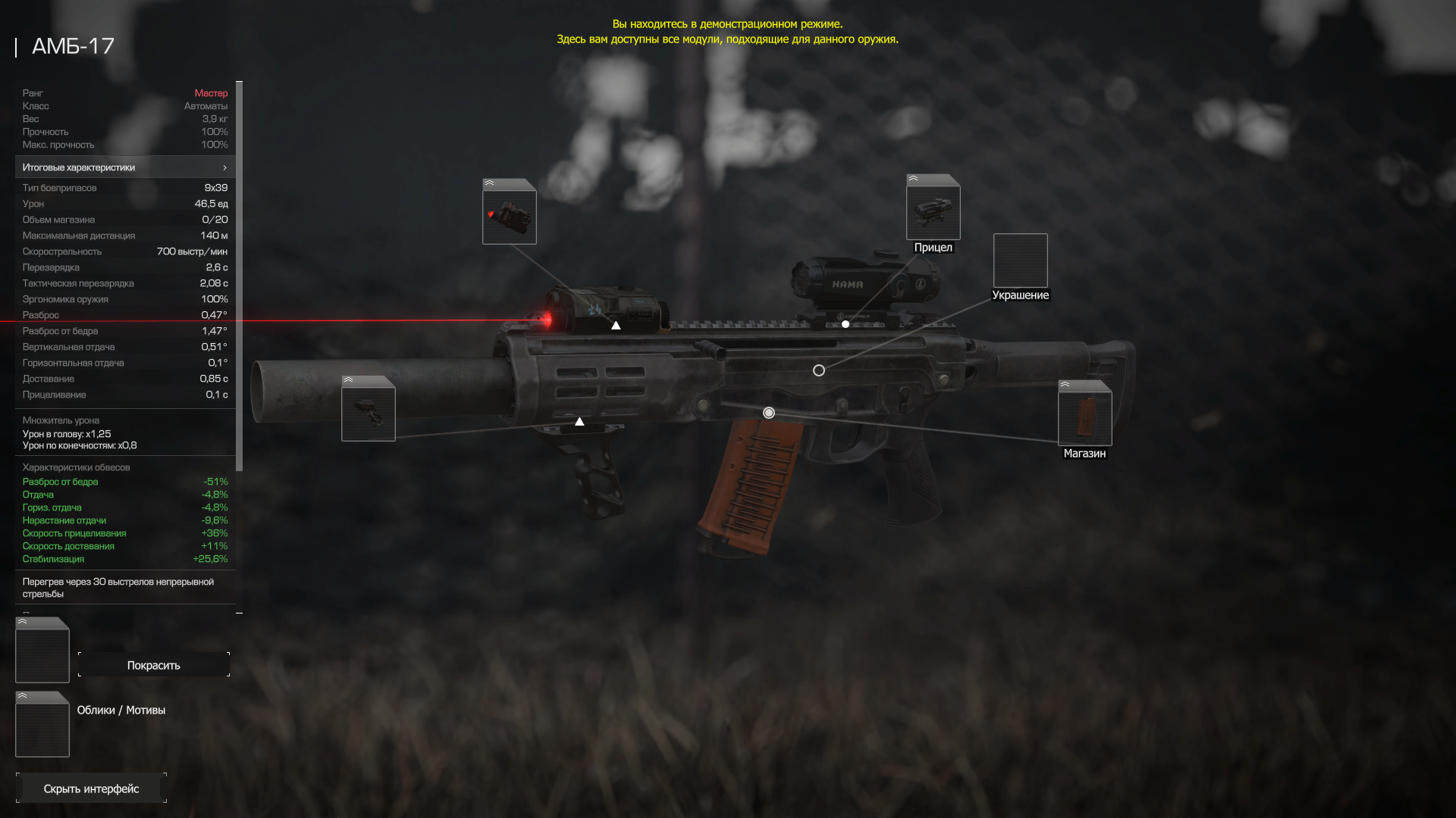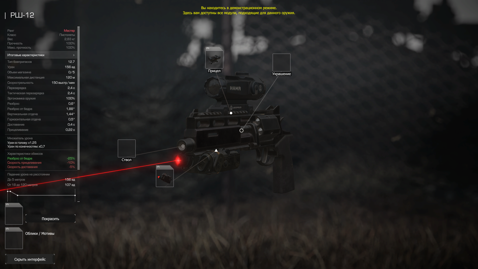 Дистанция 120м, разброс 0,2-0,25(на пулях), падение урона на усмотрение, отдача и визуалка остается прежней. Дана возможность надевать нормальную оптику.