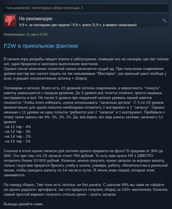 ChertblJIa SilentHill ну вот теперь их точно будут слушать, это же объективная критика а не необоснованный хейт. Просто хочу сказать что это комьюнити заслужило такого отношения к себе. Те единственные нормальные игроки это ложка меда в бочке говна.